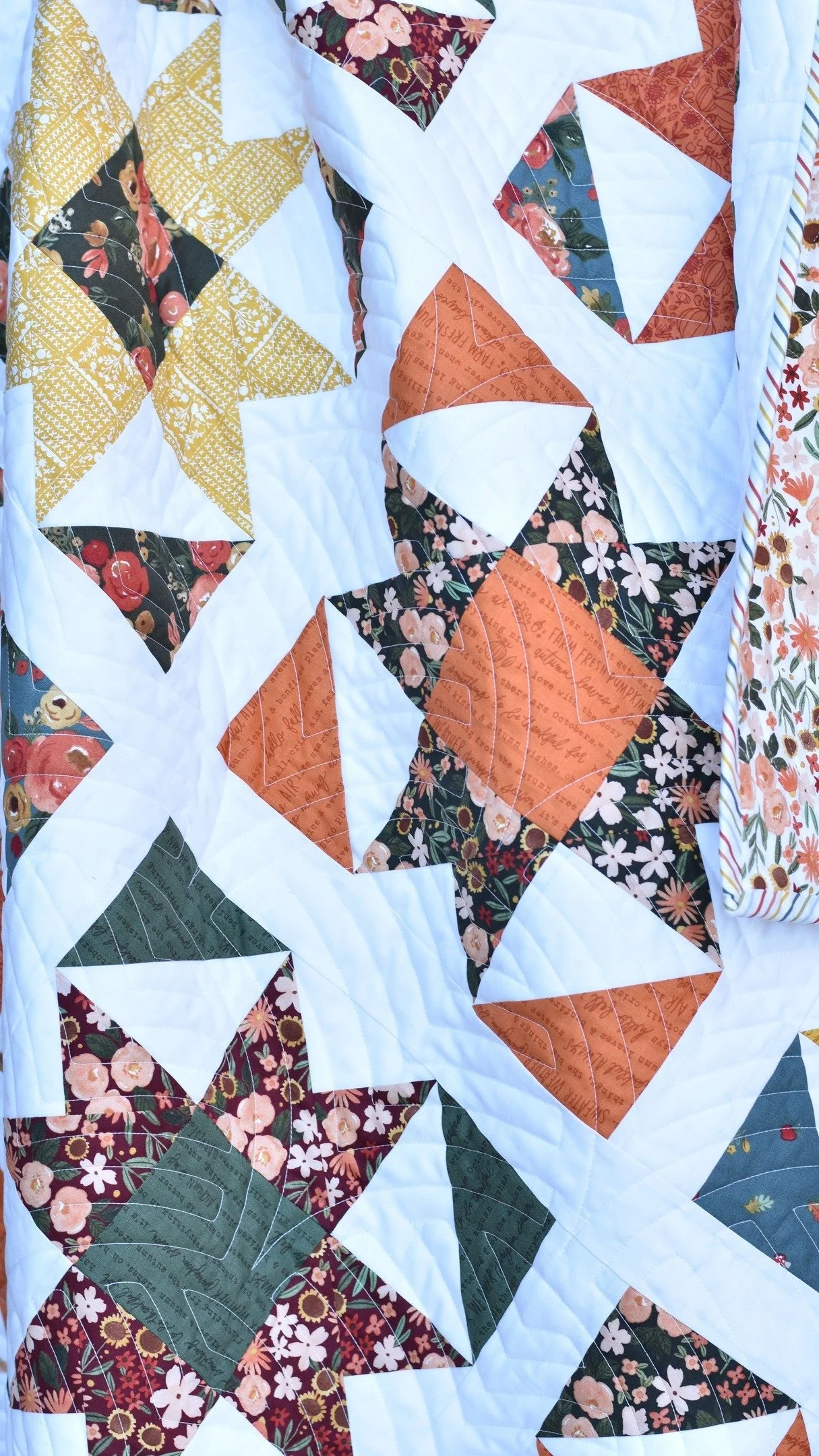 The fabric I used for this quilt is called Notting Hill by Amy Smart and I think it’s so cute. I used one of the prints from the collection as the background fabric as well. It’s a nice reminder that you don’t need to use white or another solid color as a background. This tiny print looks great and still provides a wonderful contrast with the rest of the collection.