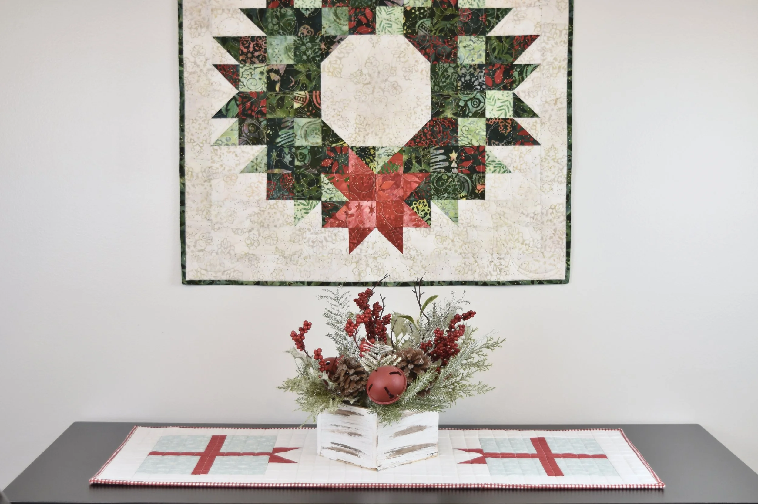 I have been wanting a holiday table runner for the sideboard in my dining room, but couldn’t decide on what design I wanted to include. The result: the Choose-Your-Cheer Runner! With this pattern, I’ve included two different Christmas inspired quilt blocks to choose from. You can make two of the same block like I did or mix and match.