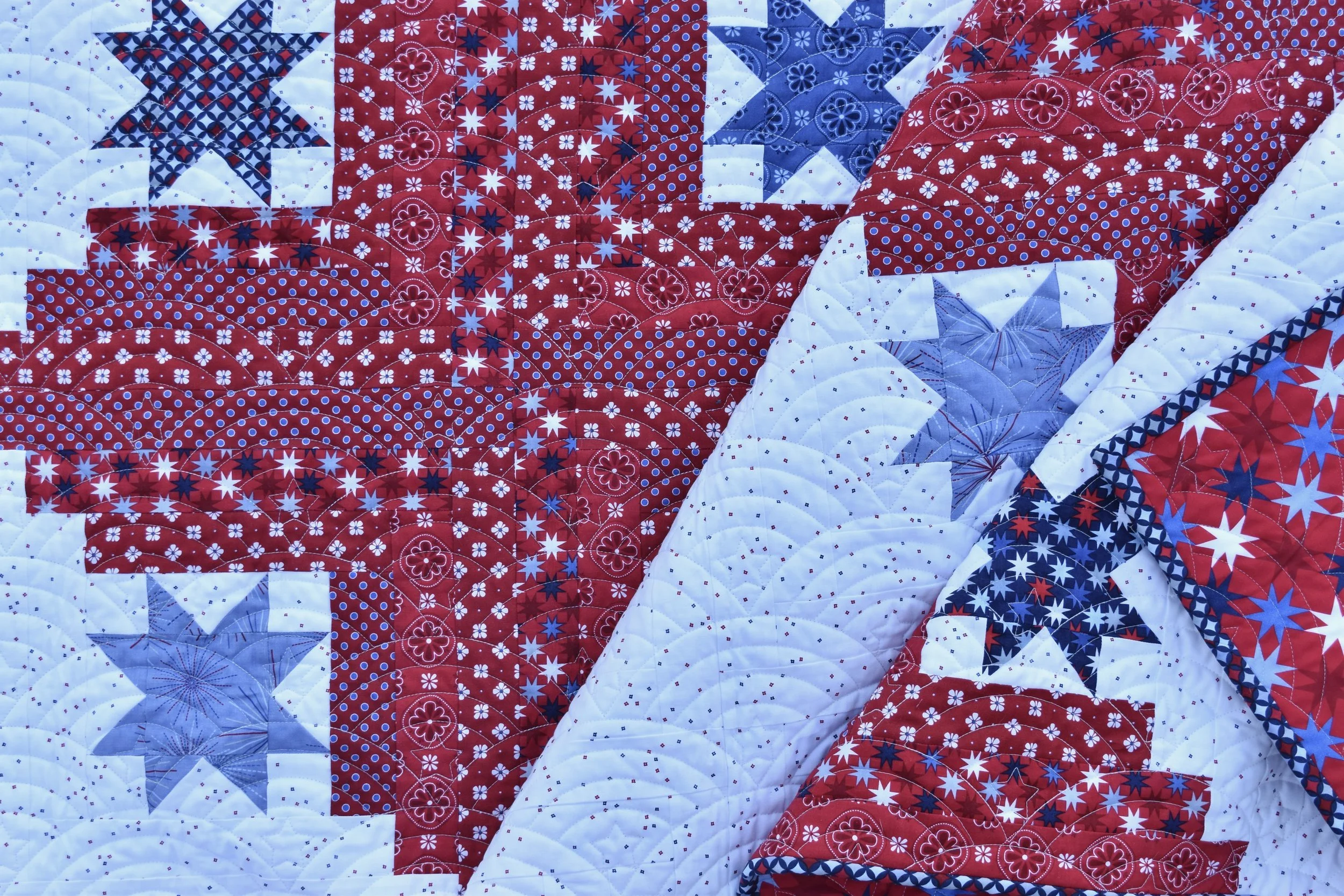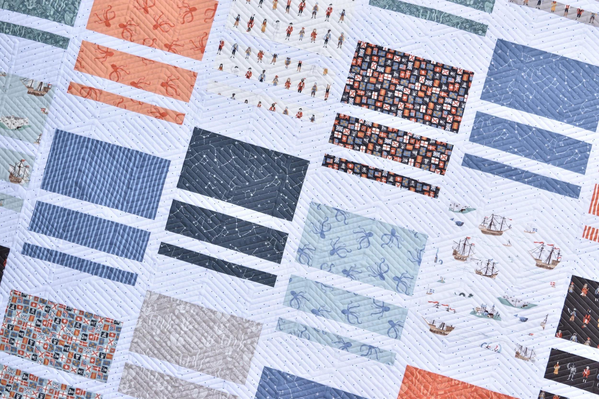Giant jelly roll log cabin quilt by Amanda Castor of Material Girl Quilts